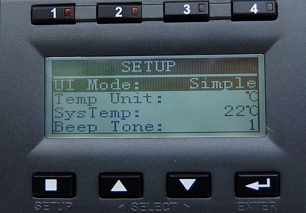 正面主要為7個控制鈕跟螢幕,4槽獨立控制選擇紐+選單+選擇與確定鑑