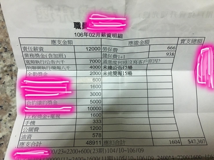 這是我的員工薪資喔~沒領很多,也是辛苦錢有沒有心賺錢.看自己沒有替慣老闆護航或說話的意思但是單純看不過去這種帶風向心態現在我已經把訊息提供給你囉~並在此文告知,如您認為前文章有任何違法嫌疑,歡迎提告我會去蒐集相關客戶之錄音,並相關同事之言論但是我就會認為您是有誣告之故意喔~
