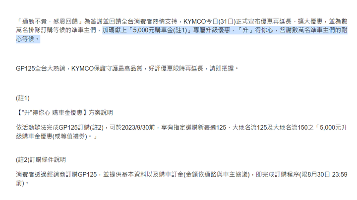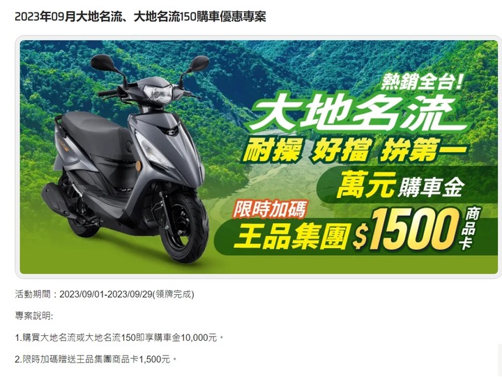 新豪邁125 , 官網找不到 購車優惠專案 , 大地名流 有一萬購車金