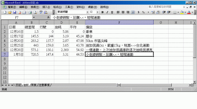幾乎都是市區(台北)上下班用途,中間大約有一個月常跑關渡,那段時間的油耗是