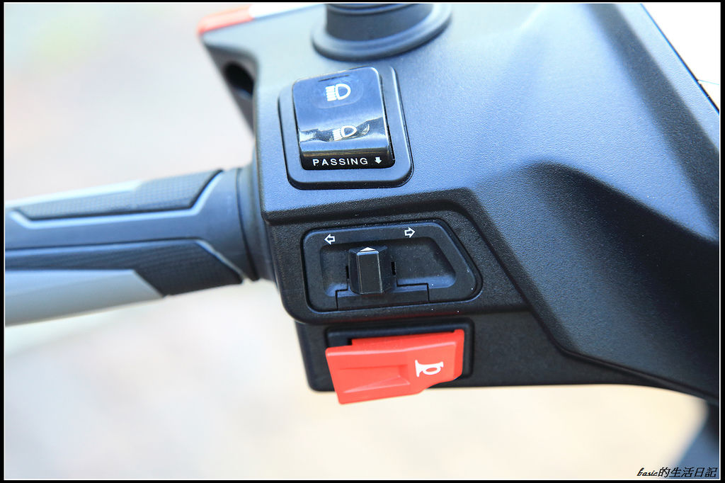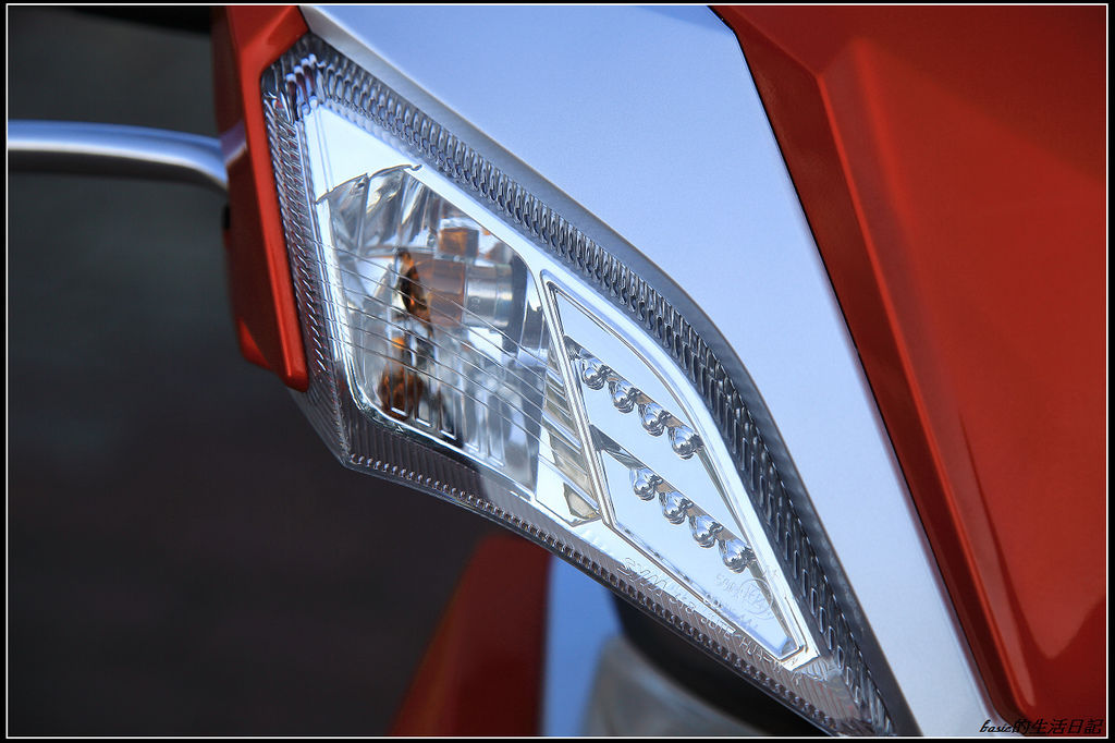 龍頭兩側是方向燈 , 不過很可惜的是旁邊的LED小燈被廢掉了 , 不然多了龍頭小燈 , 辨識性會更高