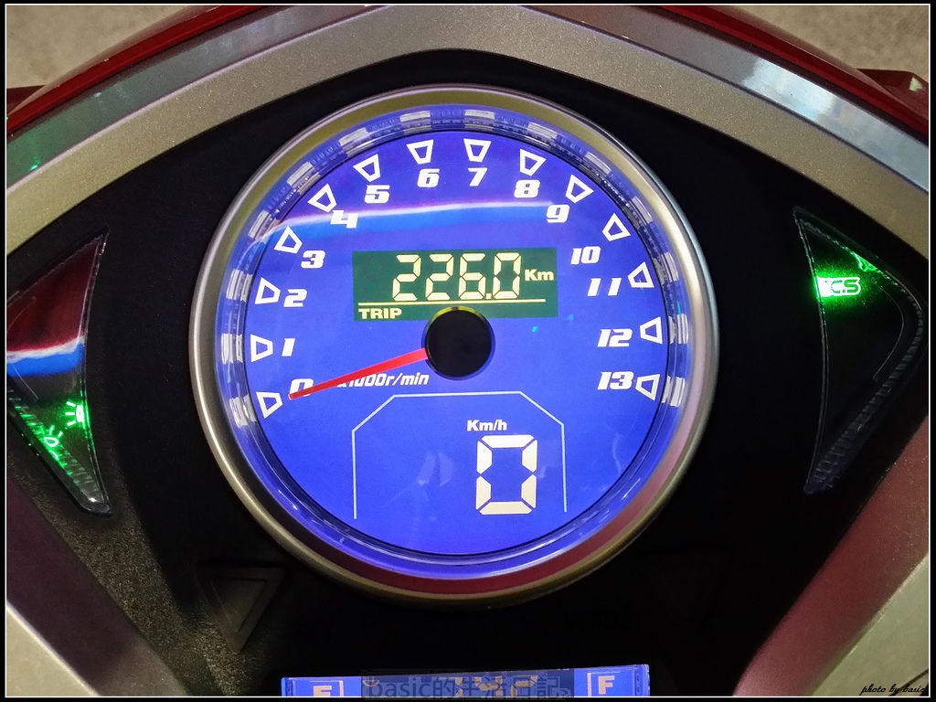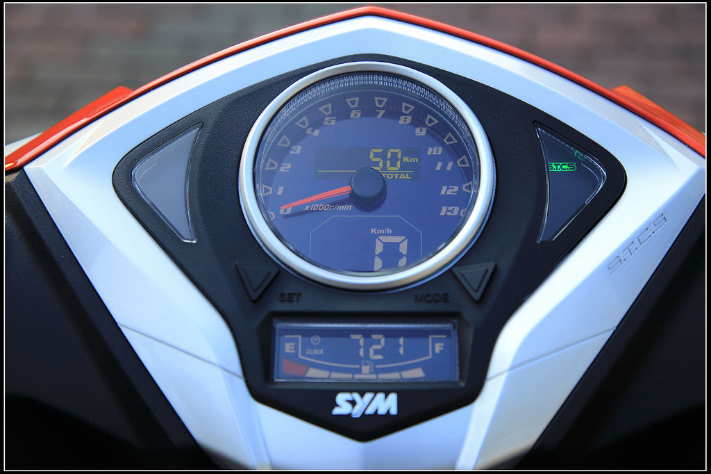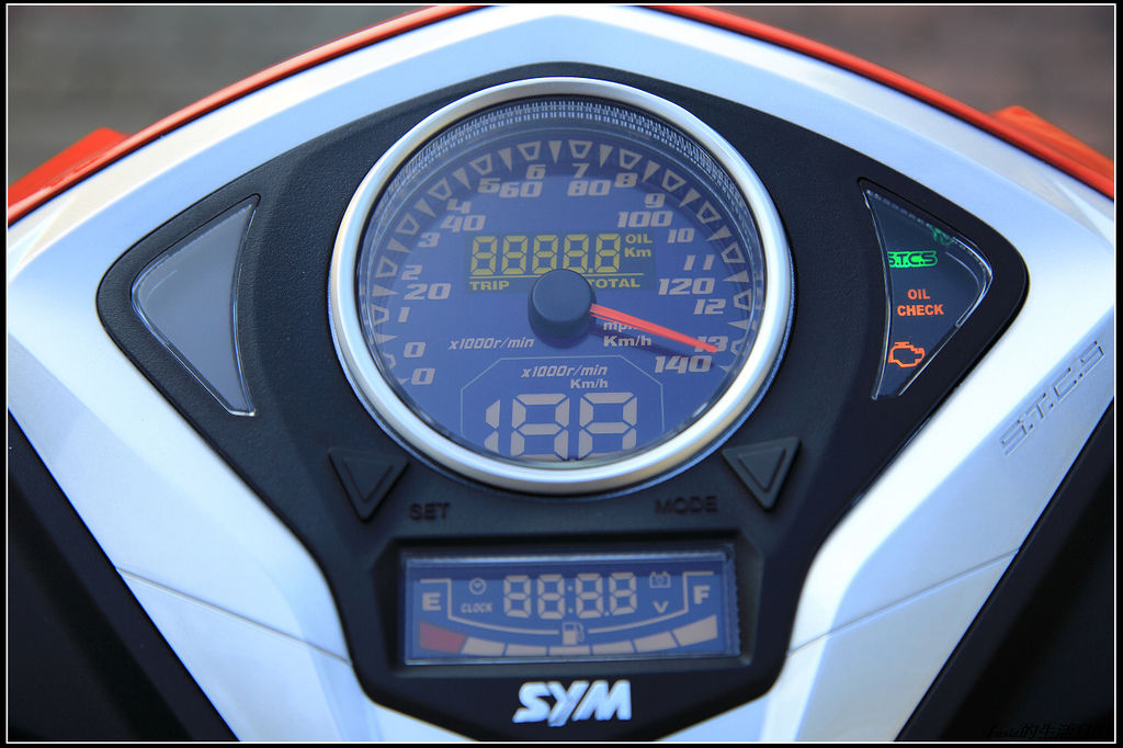 有注意到旁邊有個綠色的S.T.C.S燈號 , 亮起的時候代表可省油 , 節能 , 暗掉時代表輸出較大的動力(相對就沒那麼省油)
