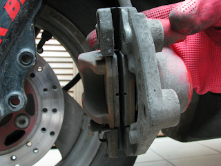 因自己主觀判定, rs100 車車的碟剎檢令片的厚度還足夠 (2009/11/14 updated), 故沒有更換新品的必要, 就按照剛才拆解順序反向裝回.. 裝好/打字完成, 收工。