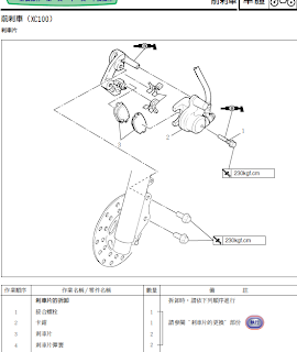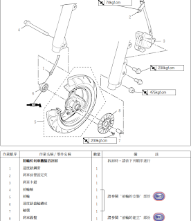 2. rs100 的前輪碟剎總成拆解順序及組合方位, 對於 DIY新手一族, 務必記住!!