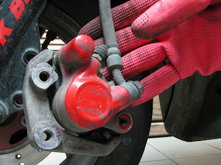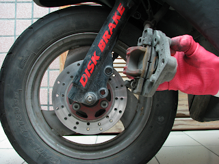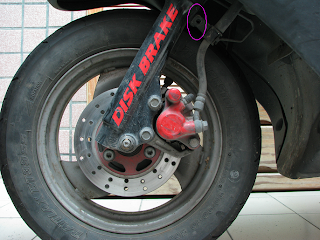 1. 潤滑油用在前輪剎車總成部份, 務必小心使用~~ 否則前輪碟剎甩油致剎車打滑~ 真的很危險!