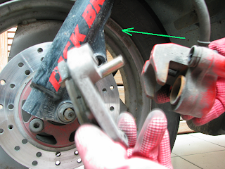 為何要用 "4分用延長桿"?? 前輪碟剎的相關六角螺絲旋緊程度, 比車體固定的六角螺絲要求更緊; 車主總不希望車車騎乘時, 碟剎盤因螺絲鬆動而跑出您車車前面吧~~ XD..