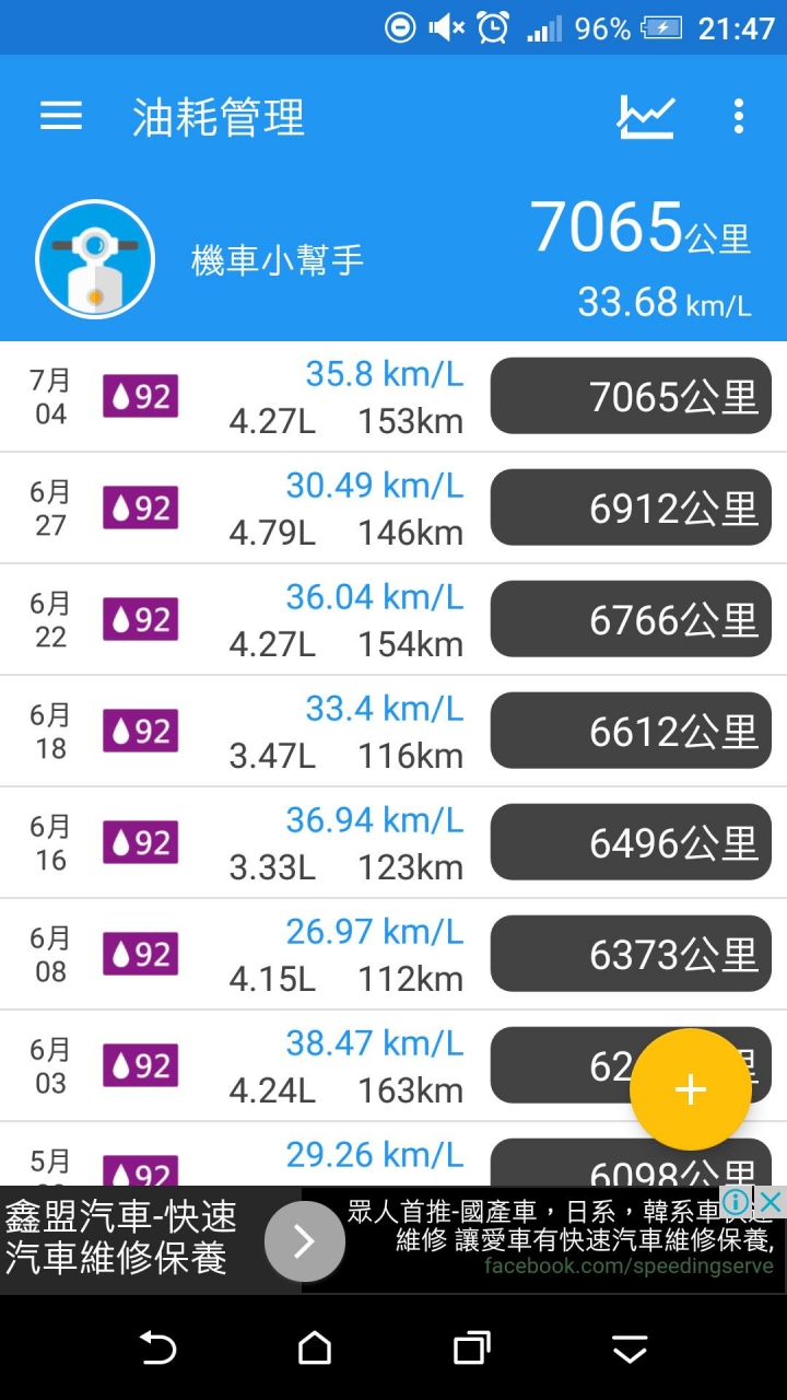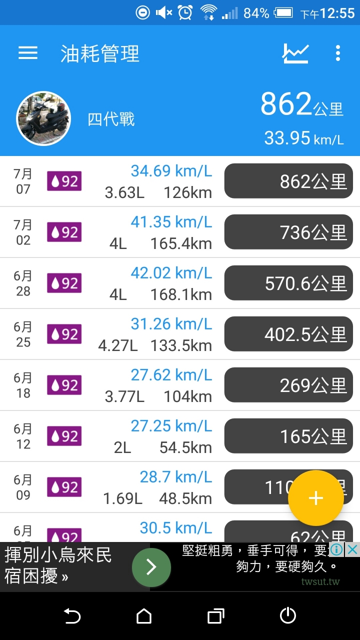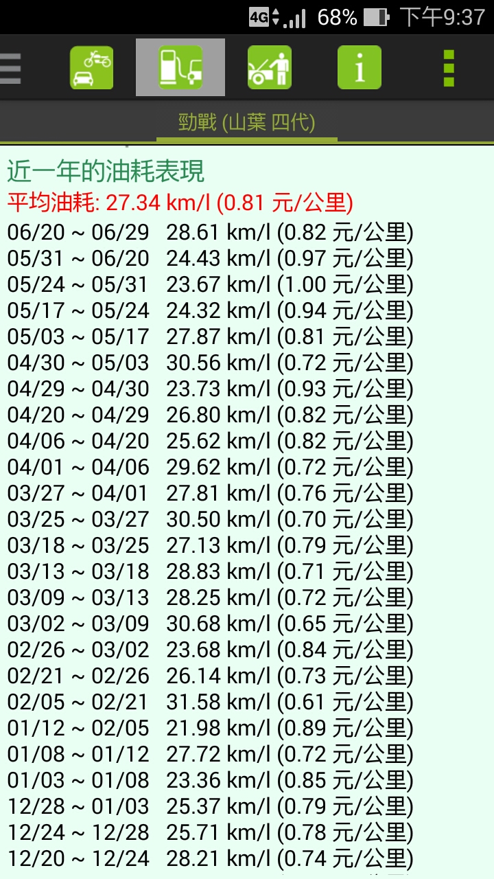 下面兩張圖是最近8次加油的油耗,之後因該也不會差太多