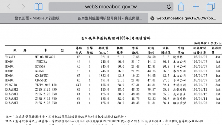 mutahuang wrote:恭喜你,剛剛我去看能源局的2016年1月份油耗報表出現了你所問的CBR500R,沒意外應該會是2016年款 好消息太慢來了.....我已經先入手 600RR 二手車了,不過騎過600級仿賽,下一步應該會回到街車吧(例如MT07)。