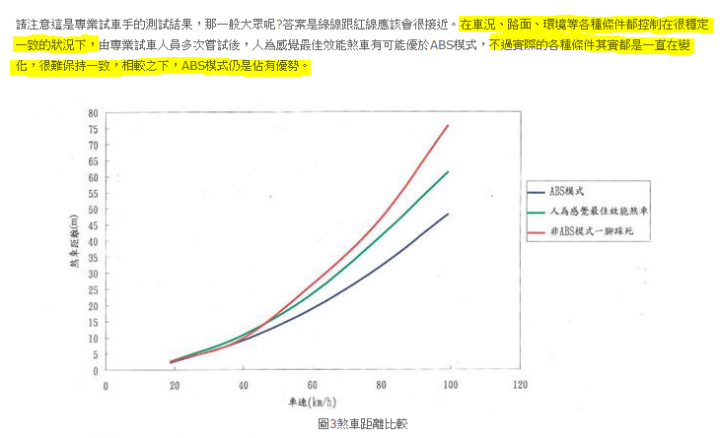像有人說ABS沒路用沒事就會增加距離,那是很恐怖的事情