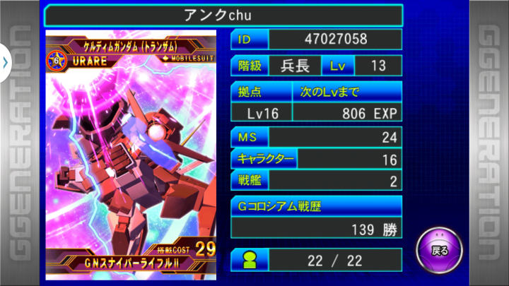 purekuso wrote:嗯~瞭解-不過新人還...(恕刪) 這裡補一下自介如果先前有幾位看到像我這樣沒自介就上來公開預約,覺得不舒服傷到眼睛的我在這裡先誠心道個歉,對不起了回題 我是安可chu這是目前的遊戲ID及官階資料:アンクchu目前朋友已滿暫無法加新朋友所屬不明 剛開始邀我進來的時候 我並不知道這裡的串他並沒有先給我什麼神級機體或駕駛而是和 帶著探索心態的我一起進入這個遊戲 一起討論雖然只是兩週前的事但我的確開始幾天還很開心的在摸索 N+機體可以進化成什麼R 還認真練滿了幾台也一路先照他提示的去拿SEED三小強自己合 去打R戰艦靠自己找到適合對戰的時間點 坳到對戰30勝領圖以上都是進入01申請領用遊戲前輩多出來的好卡 之前的事情在此感謝分享給我UR智天和克魯澤的irobeg大讓我比較早能夠深入後面的關卡我絕不是什麼 平時不出現一到發東西就浮上的伸手控只是照著一些好心前輩PO的規則去衡量自己狀況並進行交易如果不行換 告知我 我也絕不怪人這次海牛活動我也 一場打到四五次都曾經有的 硬撐到超過LV125三小強也藉此陸續換成簡易取得的活動SR機而已大概我不是會到處跟不熟的朋友喇賽的人 不會很熱絡浮上如果造成某些誤會 希望可以釋懷了 請多包涵最後 多多指教以上