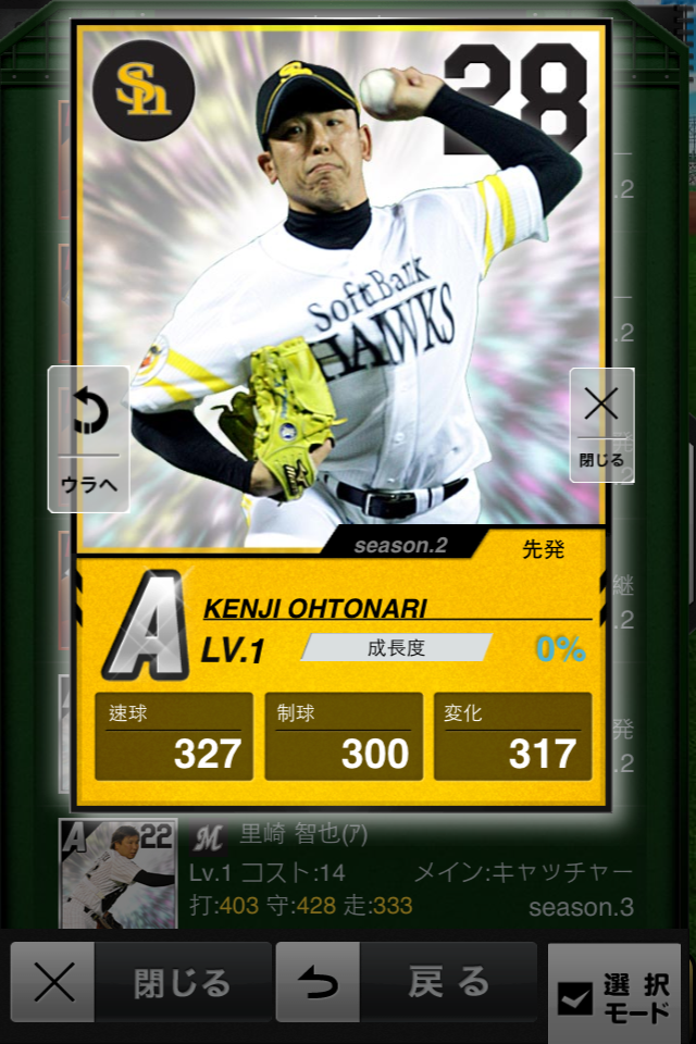 To:Rose大大崎.中島.小胖都是限定A大崎前陣子用好幾張A+才換到中島跟小胖因為能力值高又有技能我幾乎梭哈我所有A卡都換不到..人人都要S...至於栗山是沒有A直跳S,而且他現在骨折了...不知道之後新卡還有沒有機會出A...另外一張限定A中繼長田比較好換~你可以先換那張中島小胖我暫時放棄了...看能不能先換到A涌井