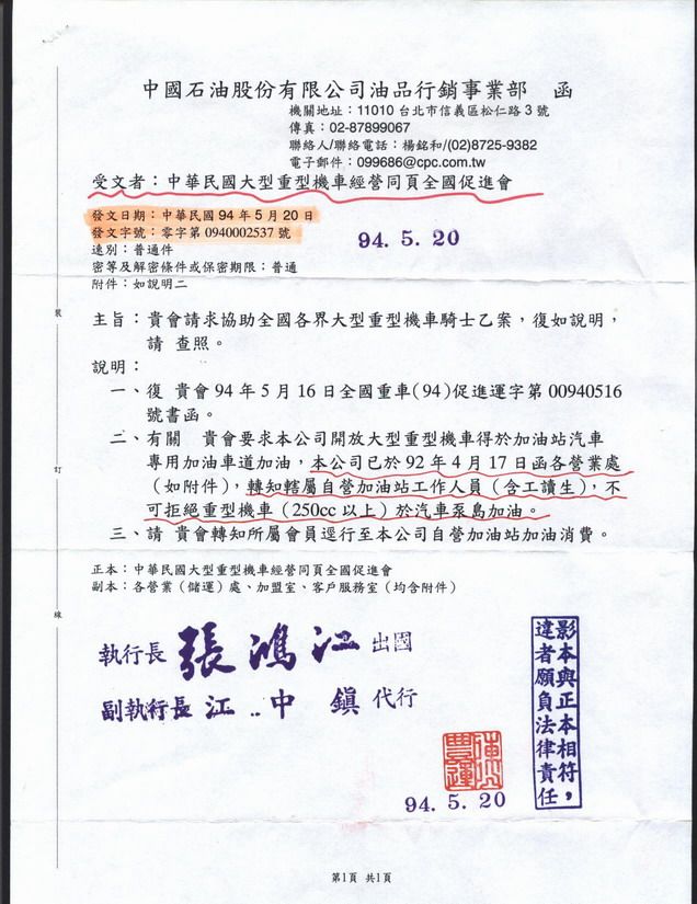 p08914 wrote:這也要打客服或請站長...(恕刪) 今天他是民營,我可以選擇不去中油是公營,不好意思,申訴,是國家給我的權利政府說要比照汽車,你們也說要比照汽車政府機關去加油又不比照喔〜先生那位?說的這麼理直氣狀的有本事去立法,重機一律機車區加油,不得申訴