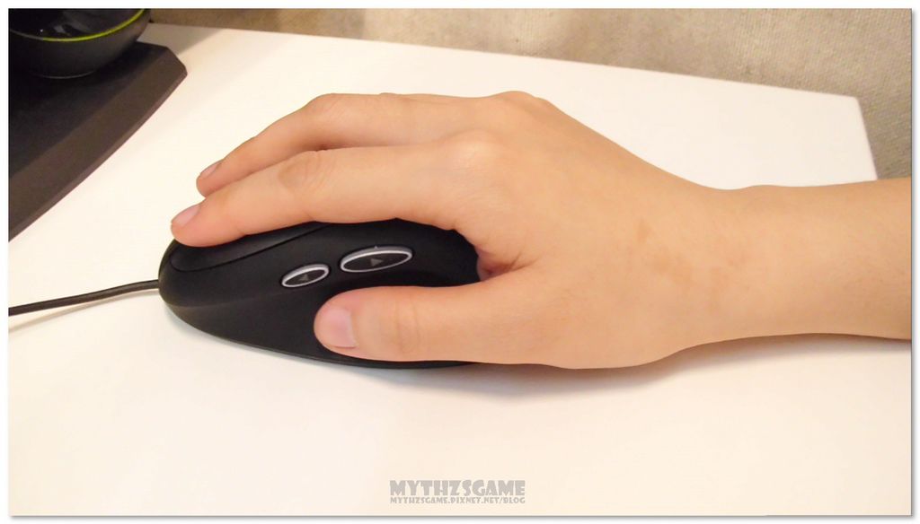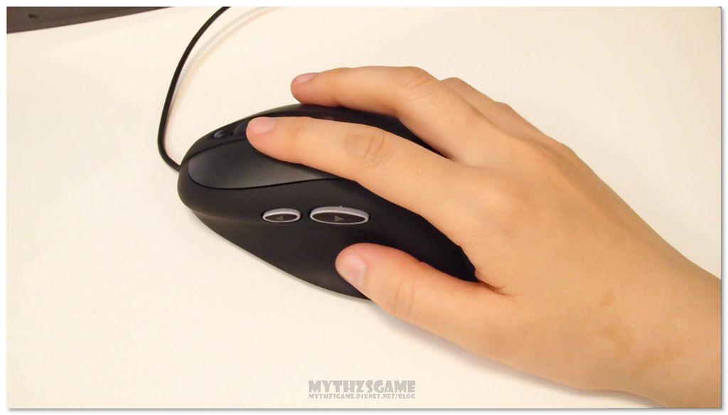 握著新滑鼠的感覺是很實在,比起一般滑鼠偏小的設計,這隻G400的體積比一般的滑鼠大了1.5倍,可以讓掌心完整的服貼在滑鼠上,不會像握一般滑鼠一樣空空的,長期用起來也舒適了許多。