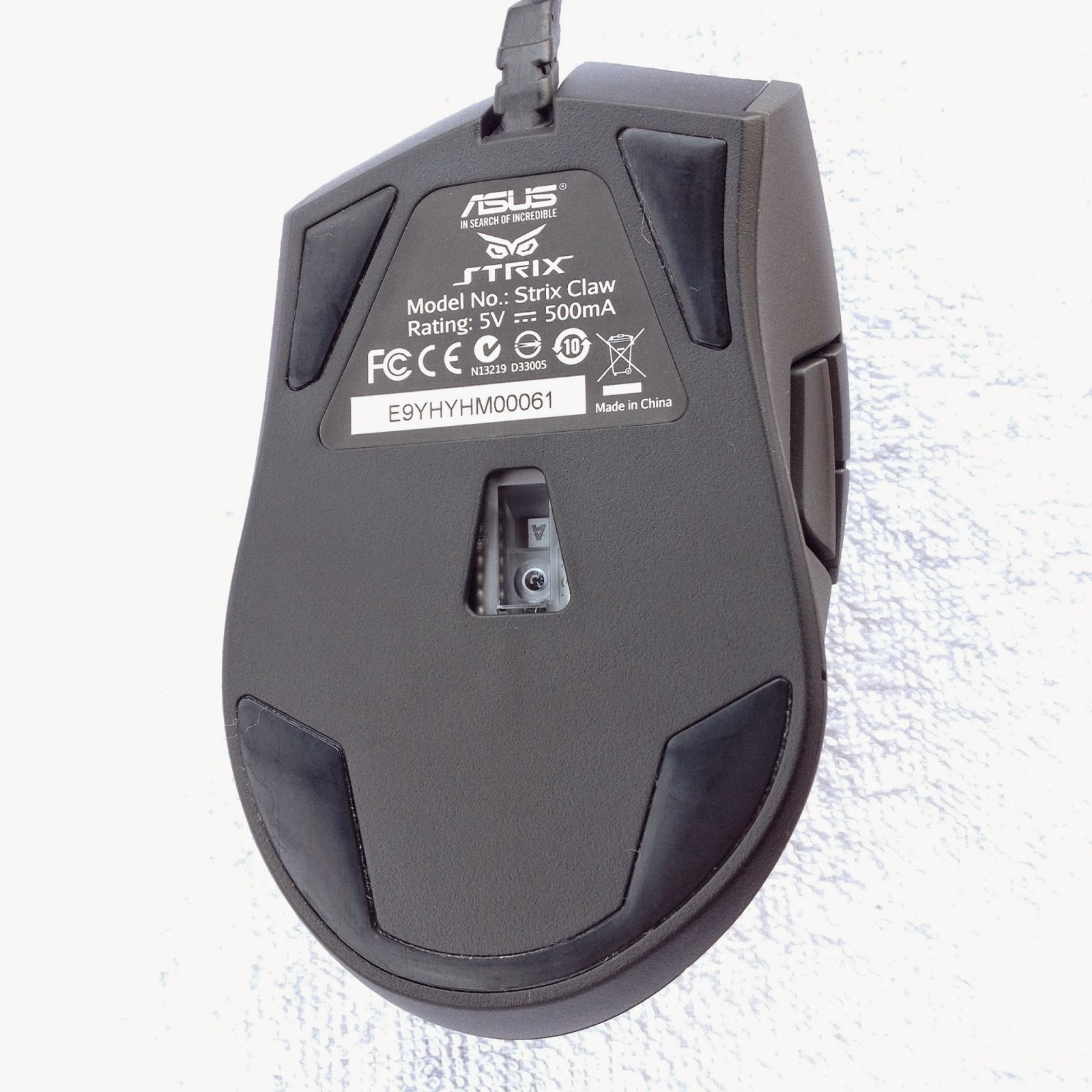 雖然雷射引擎的優勢在於能分辨微小的差異來定位到較細微的程度,但是對於反射表面過於靈敏的特性,在細微的電競領域卻是其致命傷,失之毫釐,差之千里。雖然雷射滑鼠對於桌面的相容性較佳,在比較容易反光或者光滑的表面上也可以使用,但是由於雷射滑鼠太過於靈敏,在電競領域,特別是FPS(第一人稱射擊)遊戲中,容易跑過頭,所以STRIX CLAW採用光學讀取頭加上電競滑鼠墊這樣的配置來達到最佳人機合一。