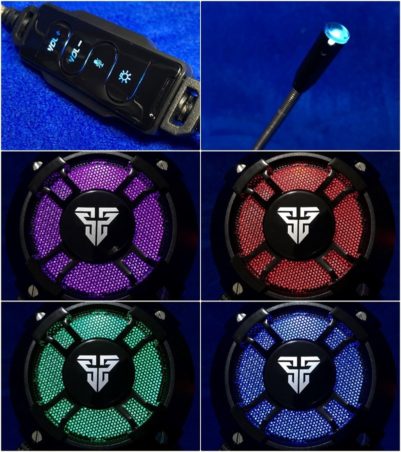 耳機側面的的燈光會自動漸變,而麥克風上的燈光則是固定,可以透過線控開啟或關閉