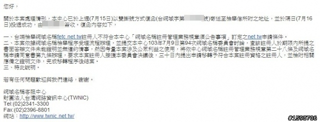 hsinchuman wrote:「net.tw」:具第一類電信事業特許執照或網路建(架)設許可證或第二類電信事業許可執照者。會不會是這一項: 網路建(架)設許可證? 有可能,但這一項在NCC查不到公開資料,問NCC的朋友,也說沒看到遠通的申請資料。