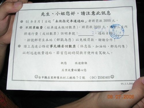 沒給回數票能過回數票車道??你開玩笑嗎,馬上就被收費員通報國道警察攔截了