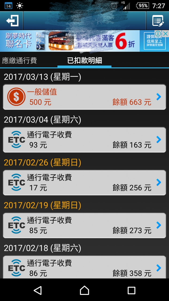 3/4我的帳戶還有163元。3/12,下午國3中埔南下接國10再接國1下瑞隆路這樣扣87元,沒9折優惠。3/13,下午我從10號仁武回程下國3中埔,扣79元,也沒有,優惠9折!我在3/13晚上到家時去超商儲值500,以前這樣就有,9折,怎麼現在都沒有了?