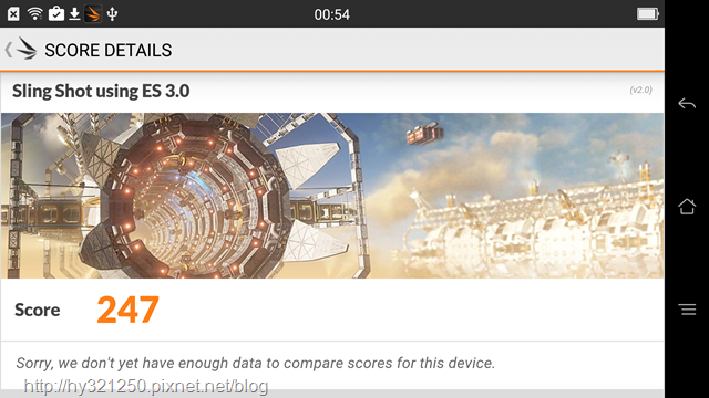 3D Mark的Sling Shot using ES 3.0模式,測得的分數是247分。