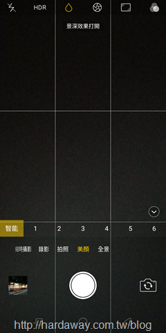 前相機的照相模式,除了可選擇使用HDR外,還能開啟/關閉景深效果。