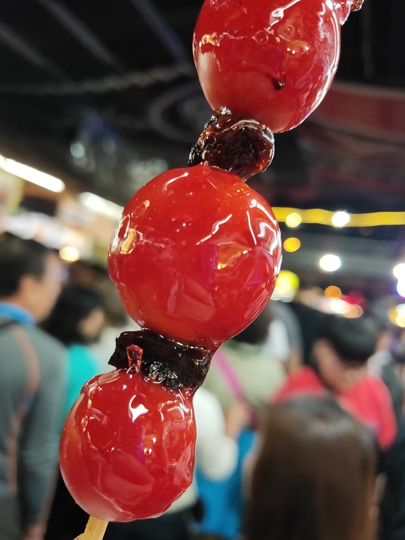 近距離的拍攝除了特寫以外,也可以得到相當不錯的背景虛化,OPPO R17 Pro即使在光源較低的地方也能清楚拍攝,讓糖葫蘆看起來超好吃的XD