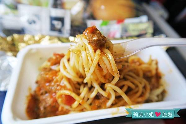 也許是事先沒有預期,反而覺得飛機餐意外的好吃。特別是義大利肉醬麵的部分,如果再加顆荷包蛋,很像早餐店的鐵板麵。