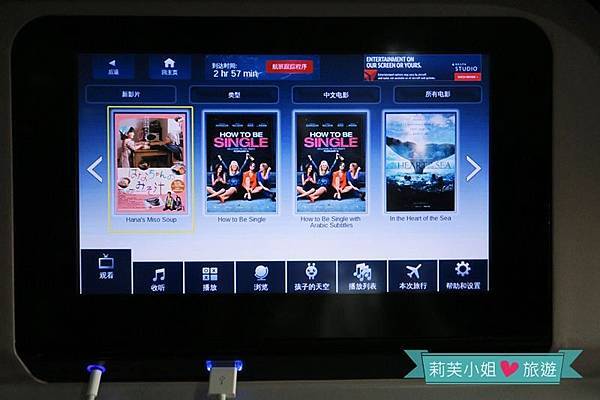 飛機型號跟來的時候同一款,影音設備內容也是,剛好接續著看去程沒看完的電影。