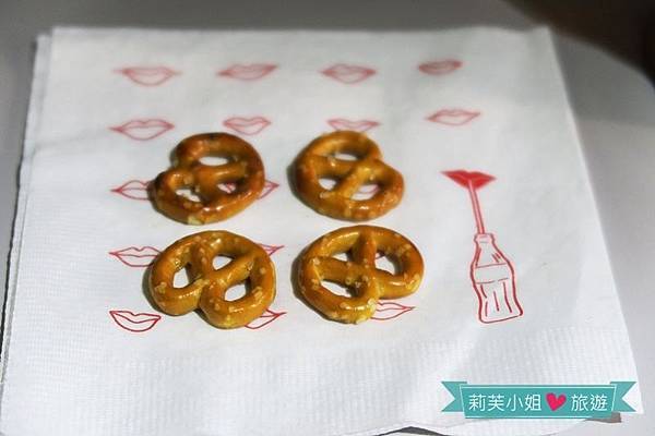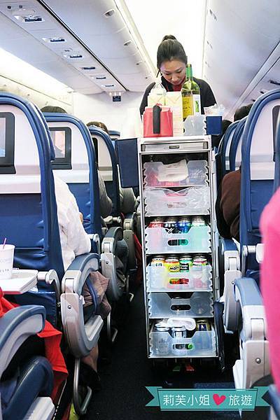觀賞完富士山之後,空服員開始送上小點心跟飲料。餐車裡頭的飲料從啤酒、果汁、可樂等碳酸飲料都有。