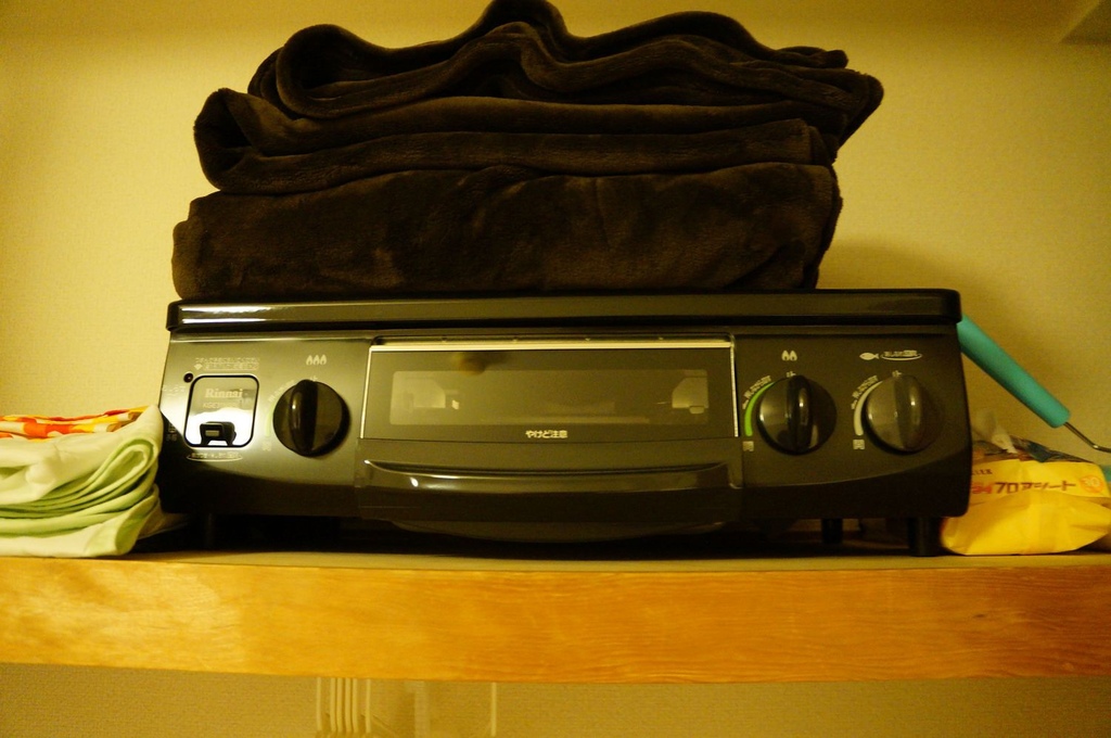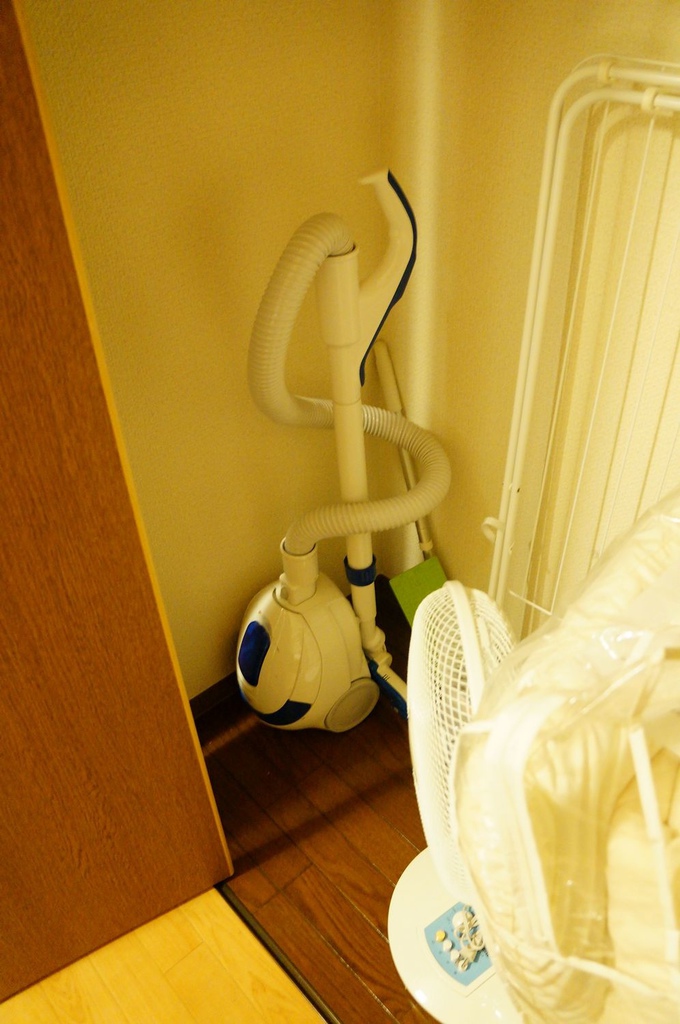 ↓右側的衣櫃打開,有多的棉被、枕頭與電風扇,還有個紅衣小女孩XD