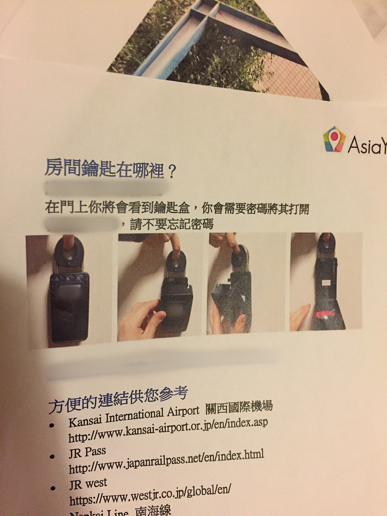 ↓下訂後,屋主會寄一份PDF,裡面包含怎麼從關西空港到民宿