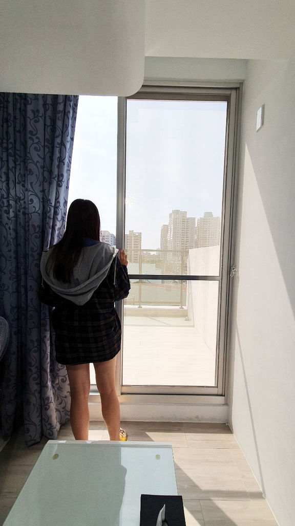 我們訂「天空雙人房」與「時尚雙人房」。一進門就在看電視,果然是年輕人,天空雙人房的配色蠻清爽,房型狹長,配備舒適沙發,還有寬敞陽台。