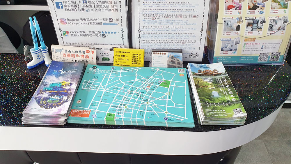 他們check in的同時,看到櫃檯上有多樣的旅客資訊,順手幫他們拿了幾張。