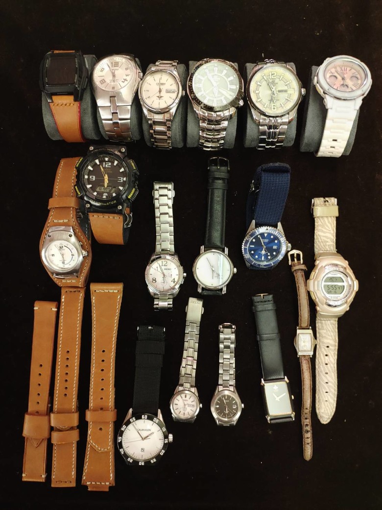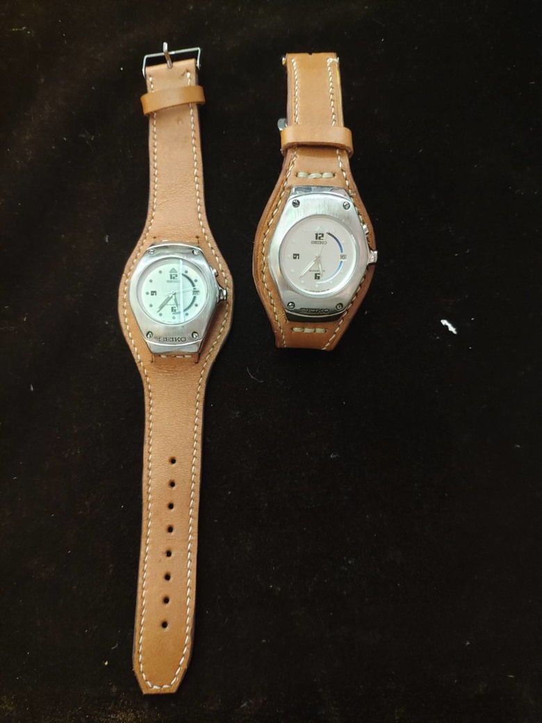 lanceryuh wrote:雖然說四個月,但是應該是四周就完修 上月底送EQB600去換玻璃也是說缺料要日本送料需要一個月,結果一周通知去取件原廠維修站要養一堆人和租金,收費不低我這支錶的礦物玻璃收費1625送修後研究過如何換玻璃,發現超級簡單淘寶買個壓玻璃的小壓力台與配套制具RMB23和UV膠備用(後來有兩支錶用到,玻璃是用黏的)一片藍寶石玻璃1.2mm平面13~18,大、厚、弧面的20~30RMB把家裡十幾支不是藍寶石鏡面的錶全換成藍寶石玻璃連剛換好礦物玻璃的EQB600也換了藍寶石玻璃金屬部分拋光或用3M海綿砂紙拉髮絲紋,一堆外表悽慘的老表三兩下就大復活還有因為看到樓主遇到的按鍵問題,換玻璃時順帶也把最老的兩隻G-shock按鍵拆下來潤滑其中有兩支二十多年前的了seiko動能表,橡膠錶帶早爛光了,錶盤小只有25mm,老婆笑像兒童表似的拋光,換玻璃、充電池(換這個對老花眼很不友善)後順便自己做了bund strap,讓表看起來不那麼像兒童表(照片裡還是還在累積經驗的半成品,未修邊,上邊油,後來錶扣換蝴蝶扣))下面這張是這次小搞搞翻新的部分手錶與順便練習做的皮錶帶