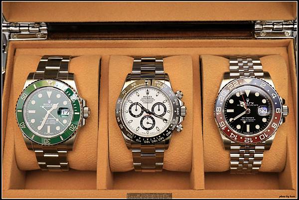 覺得特別的地方是三支錶有四種陶瓷圈顏色 , 三支的面盤也是三種不同的顏色..