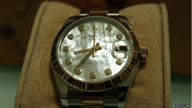 剛剛才去表店帶回來,我是買這隻送老婆當生日禮物,跟大大看的手表,差別只在於搭配蠔式表帶,因為感覺會年輕點....題外話:珍珠母貝面硬是比一般面盤多了七萬多大洋,但真的很漂亮~就是這珍珠母貝面盤,有種讓人想佔有的慾望