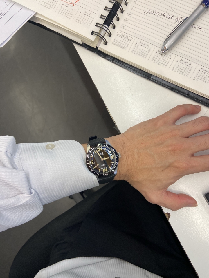 平步青雲 wrote:當初覺得這錶面很美,...(恕刪) 要先知道你的腕圍多大,然後考慮你要戴的是哪種錶,設計我個人來說腕圍16cm,無外圈(斯文類的)的錶整個直徑幾乎都是被面盤佔據所以比較容易顯大。這種錶我會選36-39mm之間的。有外圈的像潛水錶之類的運動錶39-42mm之內的我都可以接受,前提是錶耳幅度不要超過49mm,否則戴起來還是錶身多、錶帶少,會顯得特別大。也有例外像是鮪魚罐這種幾乎看不見錶耳,面盤又不會很大的特殊設計。這種的在休閒裝著時也不是問題。