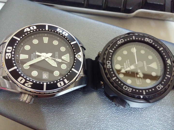 潛水兄弟檔,粗帶好伙伴本來是想買SBDX011千米機械鮪魚罐結果現場只有SBBN015/017及SBBN013千米石英鮪魚罐還有最貴的SBDB009還有大MM-SBDX001butSBDX011缺貨SBBM015/017太多人有SBDB009太高級的SEIKO加一點就能換GS了,且不太喜歡SD機心SBDX001已有小MM,如果買大MM差異不大最後入手SEIKO最準確的懶人錶SBBN013千米石英鮪魚罐不過好奇一下這種一體成型錶殼要怎麼換電池??