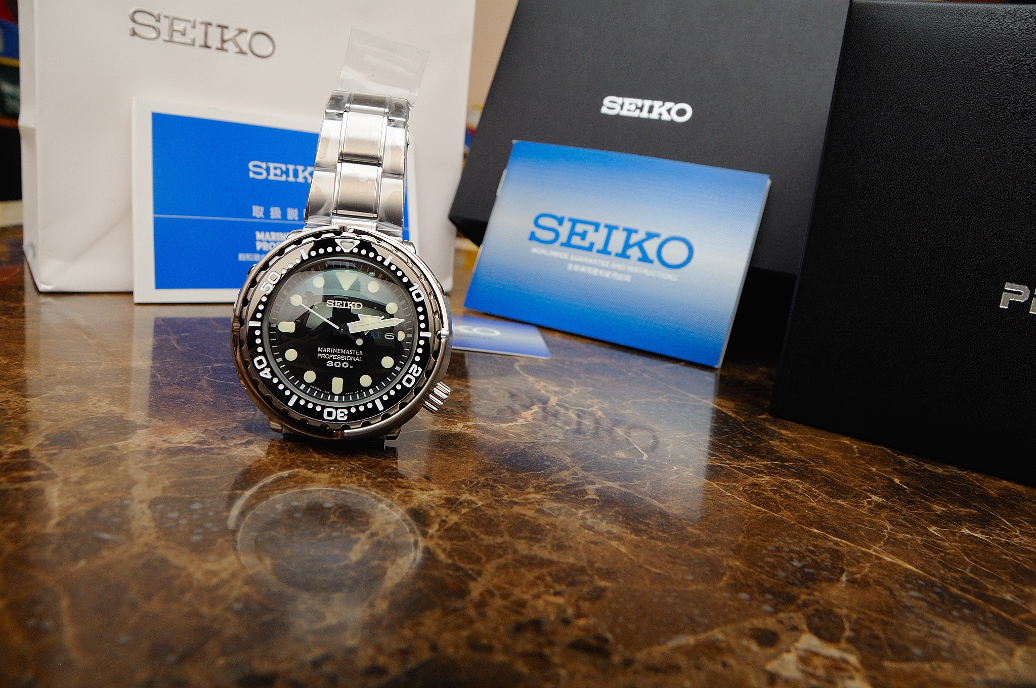 本尊現身,內容物包含Seiko保證書、說明書(其中還附有電池券,但在台灣好像用不上)等等