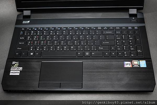 HX-550因為機身尺寸比較大,所以可以採用全尺寸的鍵盤在加上數字鍵~觸控板是比較偏左邊一些,右邊可以多一些空間放手腕