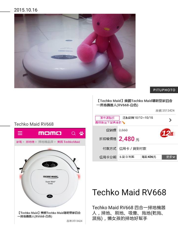 決定趁momo台特價時,購入這一台Techko Maid RV668 四合一掃地機器人