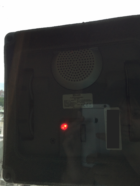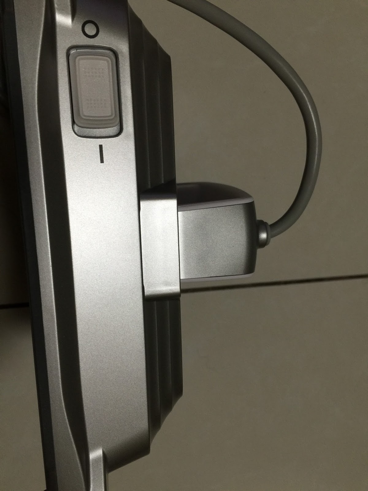 我們來測試一下, 直接把插頭拔掉, 哇! 它真的還牢牢吸在上面, 可以看到警示燈從藍色變成紅色了, 這是告知主人我有狀況了, 快來救我.