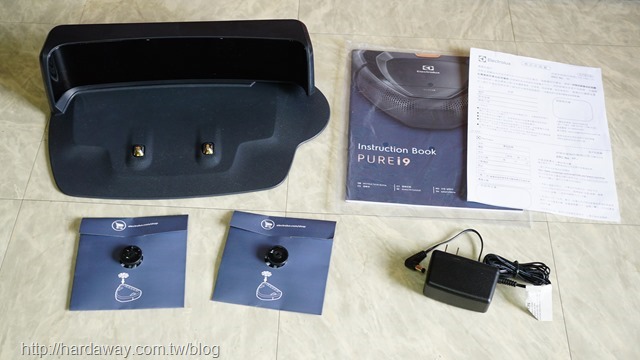 配件部分,則有充電座、充電變壓器、兩組八爪邊刷、保證書,以及使用說明書。