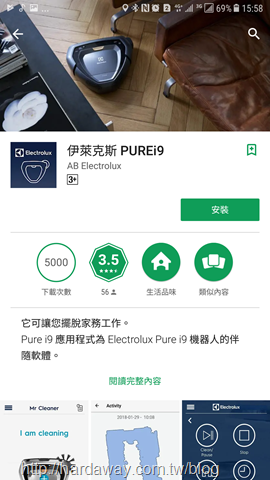 跟其它旗艦級掃地機器人一樣,Purei9型動掃地機器人也提供專屬App,好讓使用者方便設定與查看這台掃地機器人的工作狀況。因此,在正式使用前,就要先將搭配的伊萊克斯Purei9 App下載安裝在要使用行動裝置上,然後再將這台掃地機器人翻過來進行連接。
