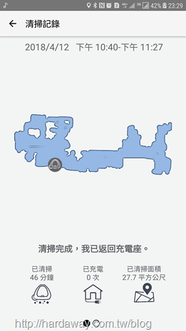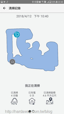 這個App提供的清掃記錄,除了可以看到打掃完的資訊外,我覺得有個部分蠻不錯的,就是在打掃過程中,我也能透過清掃記錄知道Purei9型動掃地機器人目前的打掃狀況與位置。