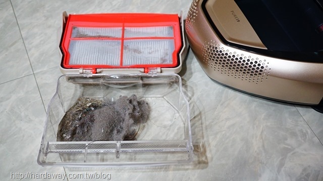 還有,Purei9型動掃地機器人清掃能力感覺也蠻不錯的!因為,在我家裡有位勤於打掃的媽媽情況下,它掃完一次後,集塵盒裡還有蠻多髒污的。不過,相對付出的代價,就是它工作時的機器運作音量還蠻大聲的。
