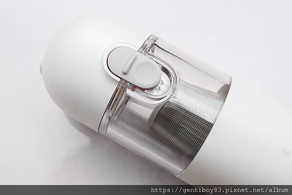集塵杯採用按鍵鎖扣設計防止誤觸,倒塵時要先下滑解鎖,倒完用的時候記得要再鎖回去。