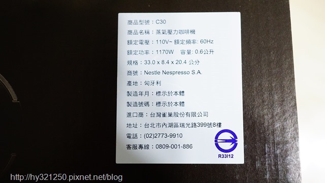 我這台Nespresso Essenza Mini膠囊咖啡機,產地是匈牙利。