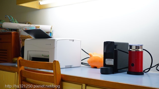由於在家裡想事情或寫blog文章時,會坐在書桌這裡,所以我將Nespresso Essenza Mini膠囊咖啡機與Nespresso Aeroccino 3奶泡機放在書桌一隅,如果當下想喝咖啡時,隨手就可以沖泡了。