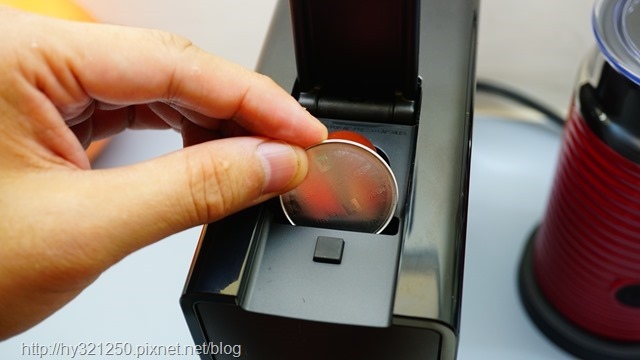 要喝咖啡時的沖泡過程也很簡單,就是打開手柄放入Nespresso咖啡膠囊,然後關上手柄。