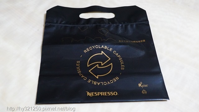 這個回收袋可以容納60~70個咖啡膠囊,所以我可以等到手上所有的Nespresso咖啡膠囊都用完後,當去Nespresso精品店或專櫃購買新的Nespresso咖啡膠囊時,就順道帶去回收,同時索取新的回收袋帶回家使用。